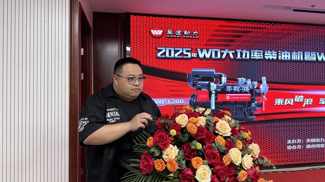 钱董向与会嘉宾致以热烈欢迎与诚挚感谢,他强调WD 系列大功率柴油机以高效能、低能耗、高可靠性成为市场标杆,WP 系列新品则依托 “万迪动力” 高端品牌基因,聚焦智能化、绿色化技术突破。